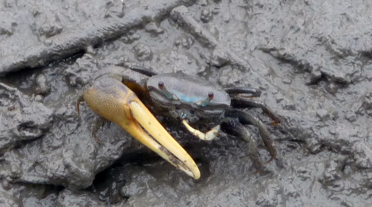 At low tide the marsh mud literally crawls with these fiddler crabs. The male, seen here, has one comically large claw which he waves in the air to attract mates. And yes, bigger really is better.