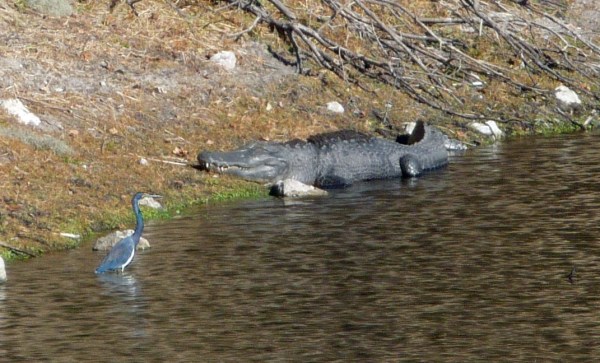It’s amazing how close birds get to these giant crocodiles. We saw ducks that swam right by like the crocs weren’t even there. This Blue Heron is a safe enough distance away, but you’d think he’d choose a different spot to wade. Maybe he had his DNA crossed with one of those city pigeons who like to live dangerously by always standing just barely outside of kicking range.