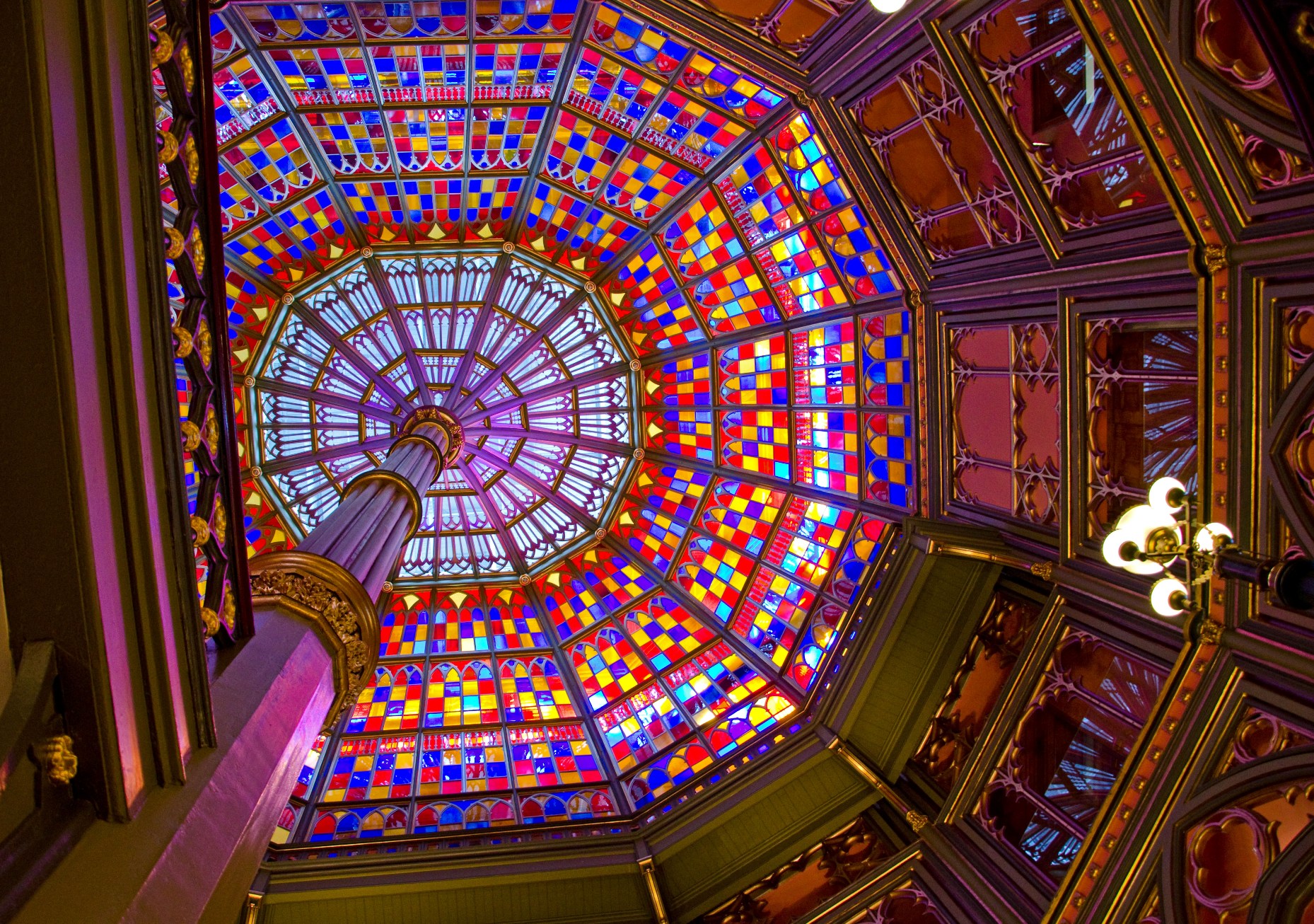 Why we love this photo: This stained glass dome gives an improbable carnival feeling to the interior of the otherwise stately capitol building. This perspective makes me think of a circus tent.
