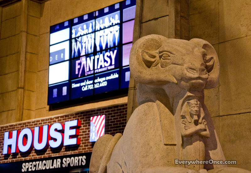 The Luxor Hotel’s striking pyramidal exterior held promise for an amazing Egyptian experience the interior just couldn’t deliver. Riding the escalator to Luxor’s main floor didn’t give us the impression we were entering the ancient city of Thebes, but rather a modern movie theater. A handful of Egyptian style statues and obelisks fight a losing battle with undisguised concession stands and neon lights that mostly wreck any attempt to create an ancient aura.