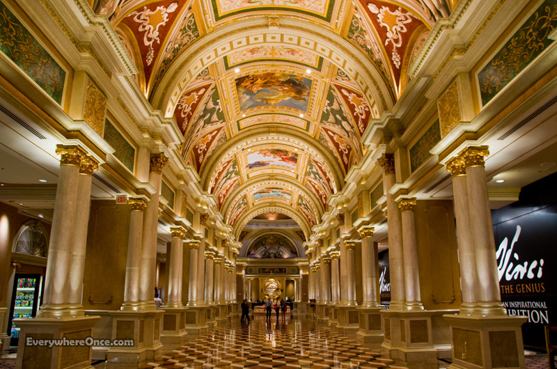 From outside, the hotel recreates the famed Doge’s Palace and campanile of St. Mark’s Square. Although, being Vegas, they apparently couldn’t resist the opportunity to foul the Doges façade with Tim McGraw and Faith Hill advertisements.