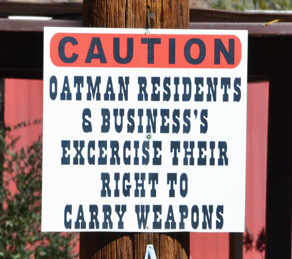 Oatman sounds grotesque ..happy you got out alive and with your grammar intact. Seriously, at the very least they could make their trigger-happy sign not QUITE so ignorant. “Business’s” ??? Really? They couldn’t just use the plural?