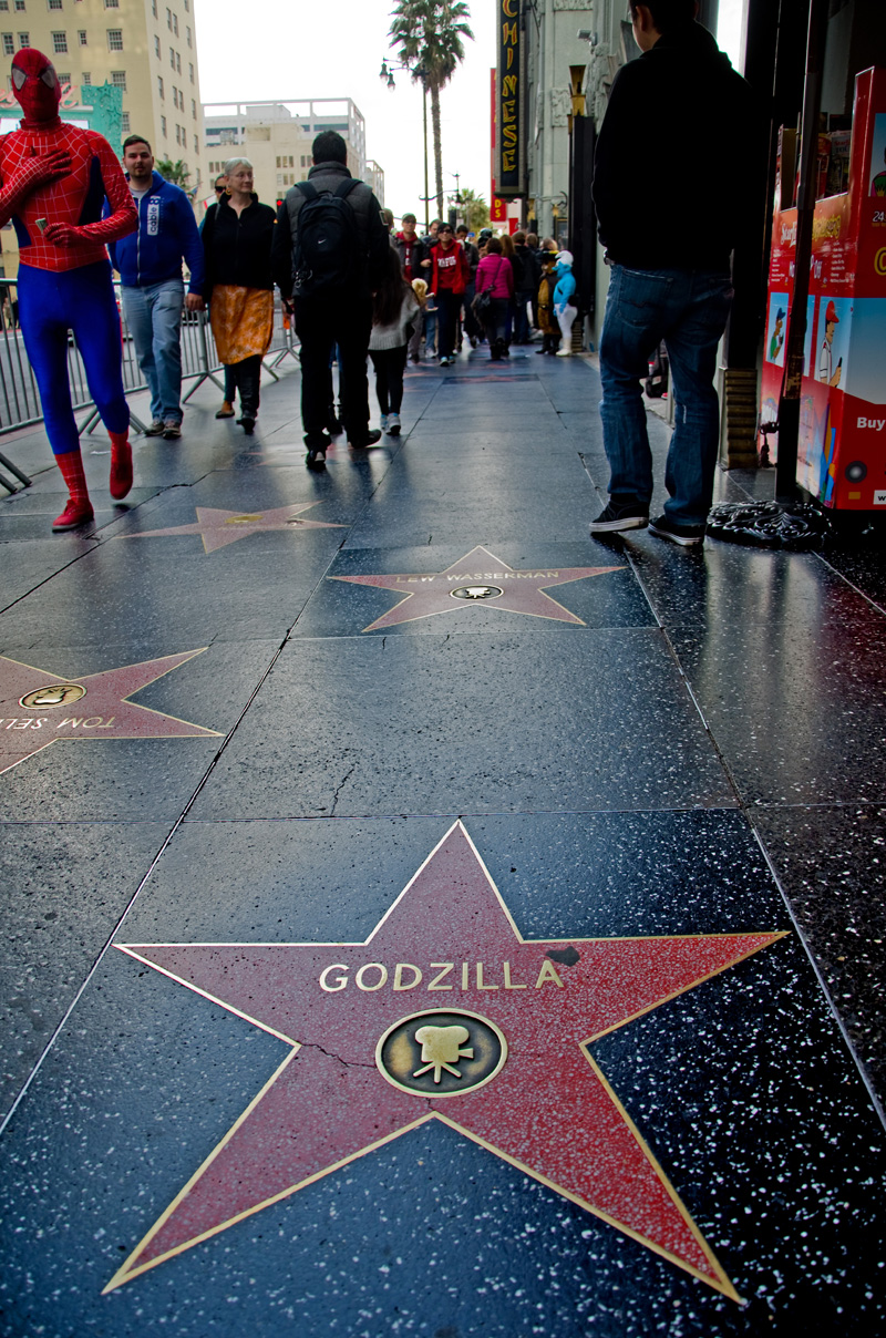 But being here when Oscar is in town is completely unnecessary. Even during the year’s other 364 days, it’s still a place to see some of the world’s biggest stars. Like Godzilla; flanked, of course, by his ever-present sidekick, Spiderman.