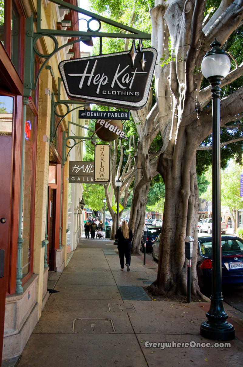 We set off instead for more hallowed ground and discovered Mission San Luis Obispo de Tolosa just a few blocks away. Founded in 1772, this was the fifth in a chain of California Spanish Missions established by Father Serra. Unlike the others, though, this building’s unusual combination of belfry and vestibule make it the only “L”-shaped mission anywhere in California.