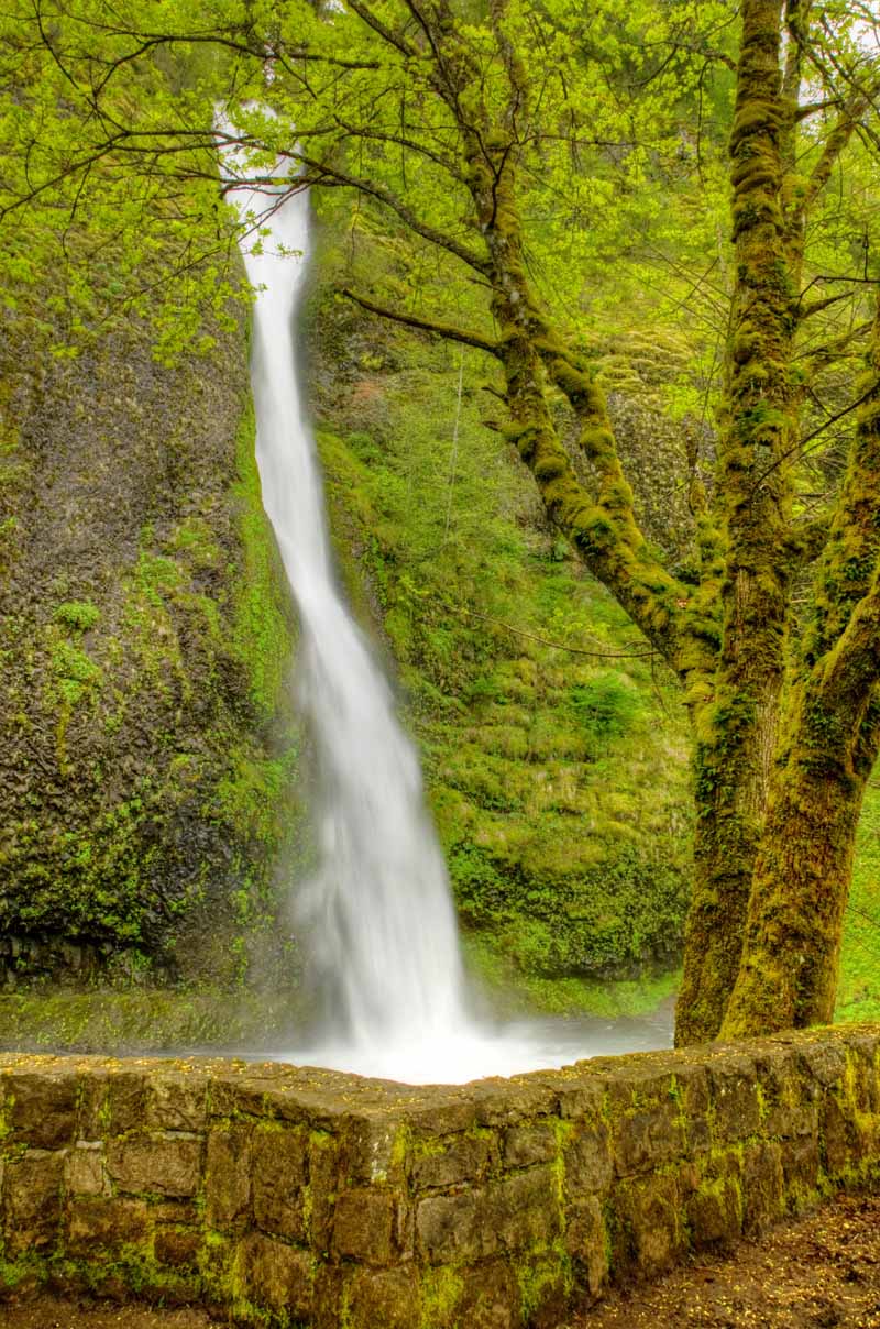 Another drive-up waterfall awaits just three miles further north. A hiking trail leads away from the road and toward more waterfalls, including Upper Horsetail and Oneonta.