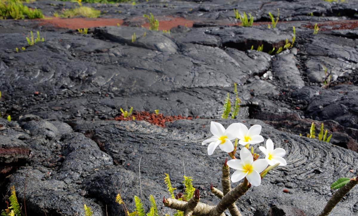 And while Kanaloa assaults Pele’s creation from the sea, I’o – the giver of life – attacks from below. New vegetation, and even flowers, struggle through and widen cracks in the otherwise barren rock. Locals and conscience visitors hasten the process by seeding the seaside with fledgling palm trees.
