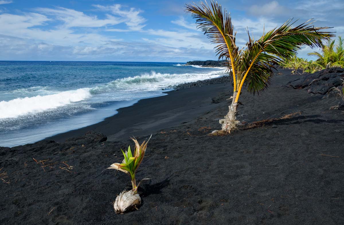 One thing you soon realize while exploring a volcanic island like Hawaii is that black sand beaches are more the norm than the exception. The other thing you realize is that not all black sand is equally black. The younger, it turns out, the darker.