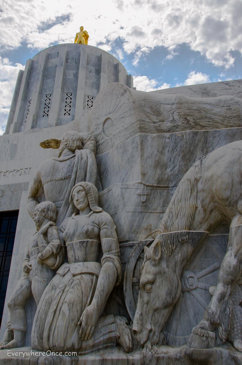 State capitols became sightseeing must-sees during our cross-country tour. The architects that designed this one bypassed the more common classical styles and drew inspiration from the Art Deco trend popular in the 1930s. Constructed in 1936—exactly a century after the first wagons rolled along the Oregon Trail—this is state’s third capitol. (The previous two were destroyed by fire.) Topping the building is a gilded sculpture of a pioneer.