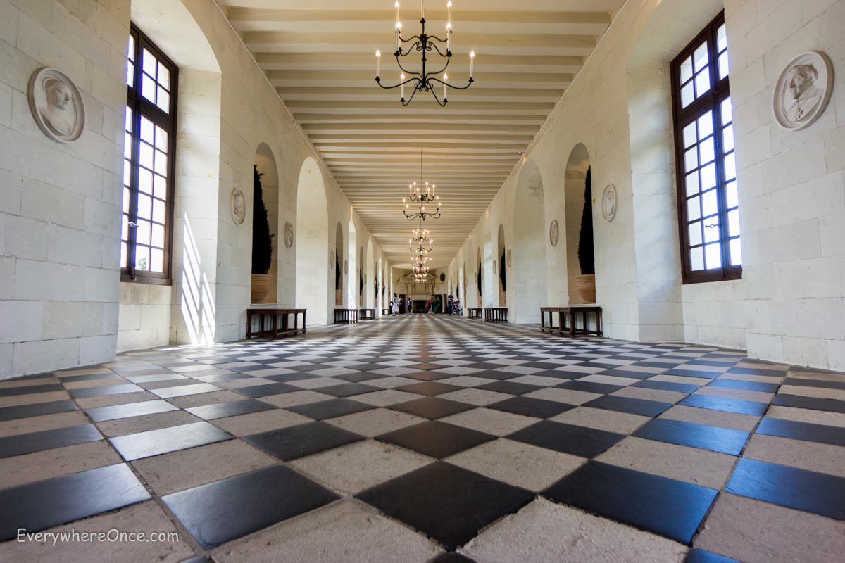 While marred from afar, up close the castle has plenty of interesting architectural details to make up for it. A distinctive feature in the center of the châteaux is a double helix staircase similar to one sketched by Leonardo da Vinci. Two people ascending or descending the stairs at the same time can catch glimpses of one another but won’t ever cross paths. We gave it a try and yes, it really works.