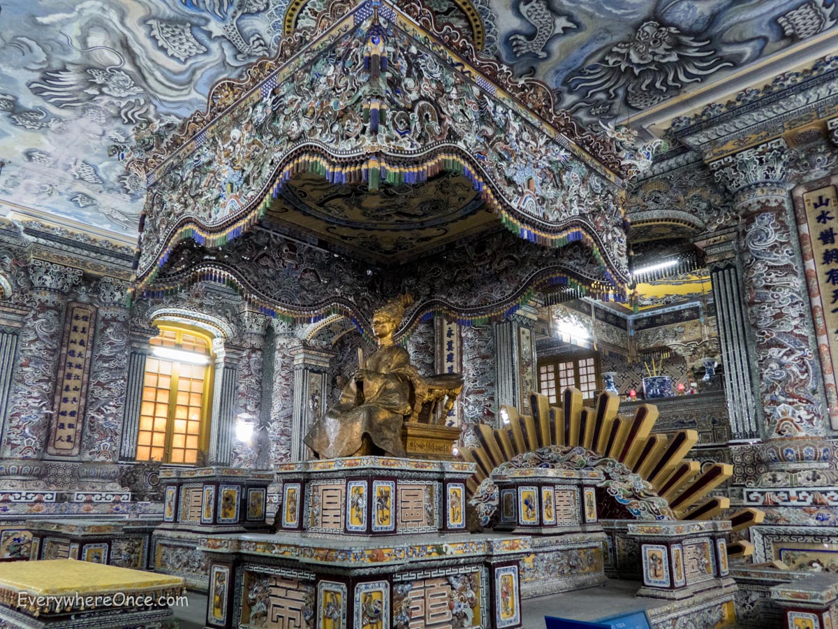 The complex is an interesting, tranquil place to explore, but we found it lacked the grandiosity of the Imperial Palace and the dramatic impact of Khai Dinh’s tomb.