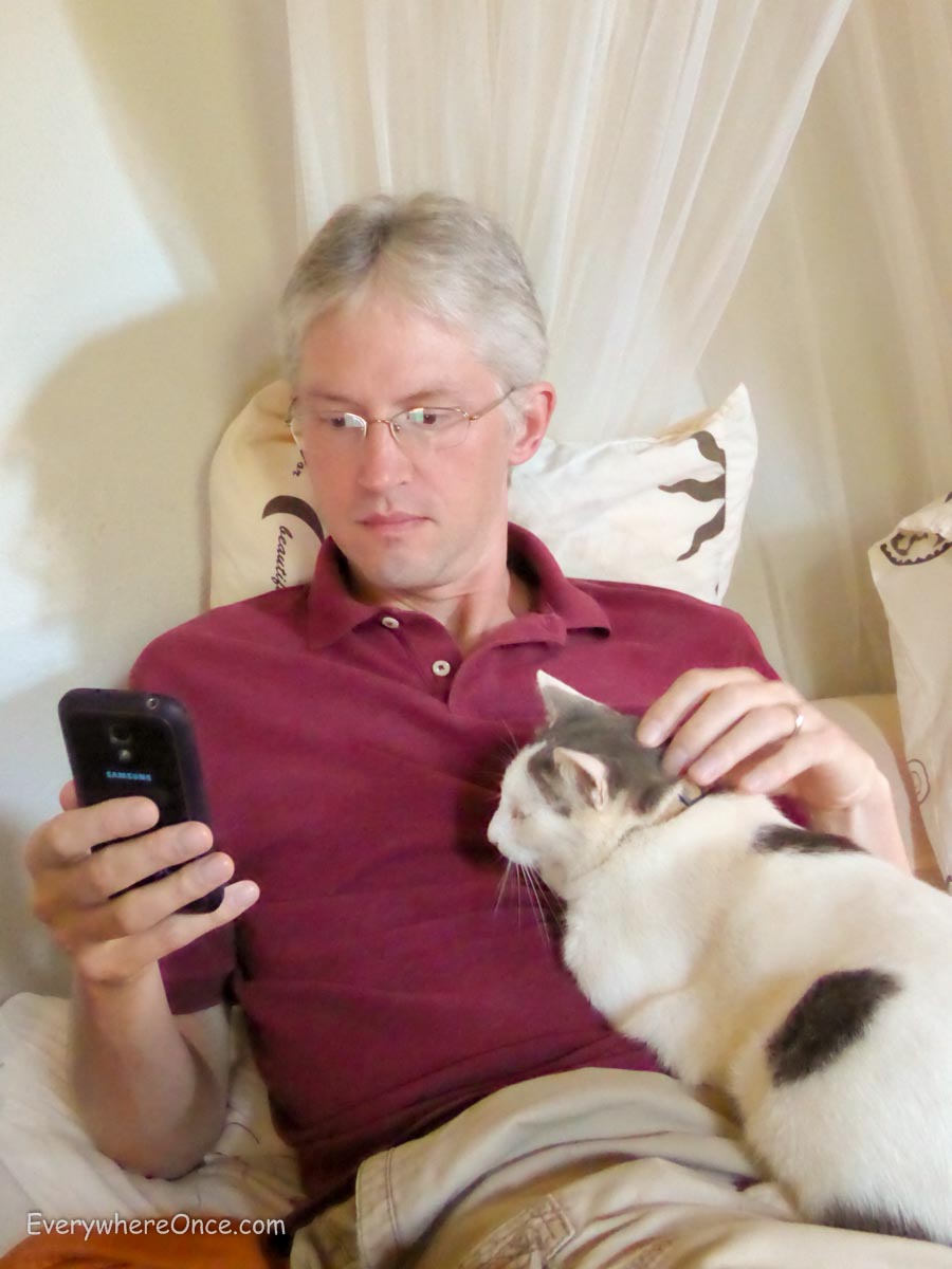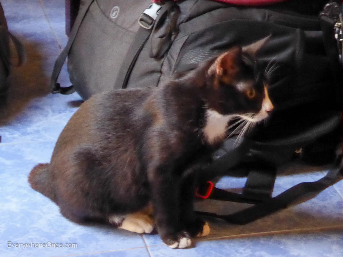 Still, as excellent as the margaritas were, they were trumped by the kitties that entertained us with their drama and demands for petting and hammock-sharing. On our last morning at Time for Lime, our bungalow was a hot spot. Three cats came for a visit, casually sauntering inside, including a black and white kitten who nosed around our backpacks. Maybe he wanted to come along for the ride after all.
