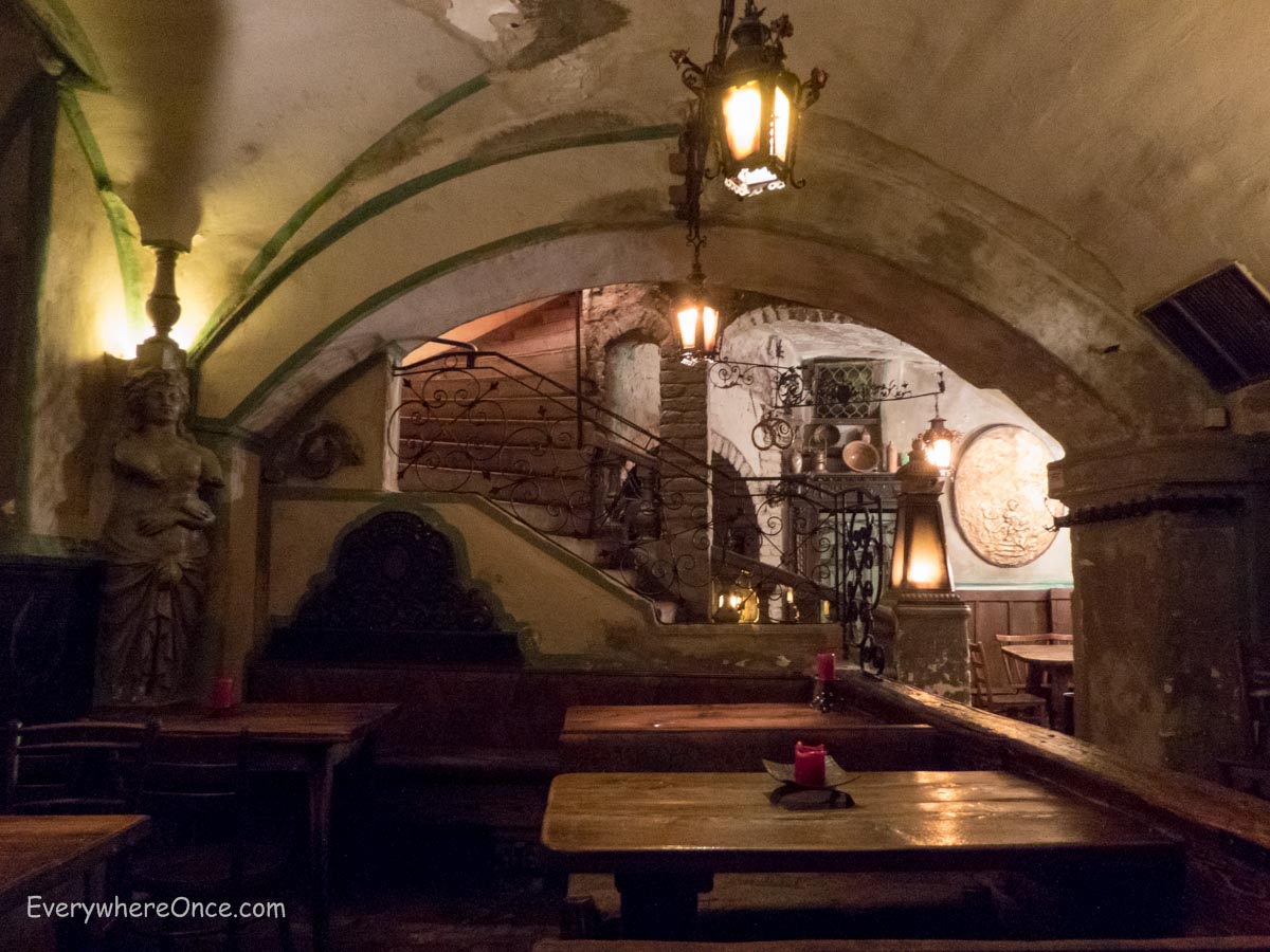 Dine in the atmospheric cellar restaurant Brezlg’woelb