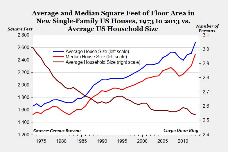 Or consider the extravagance of the average American house. Thirty years ago our houses were a third smaller than they are today even though we had more people living in them. If Ms. Fagan wants to argue that the average American can’t afford to travel because they need to work overtime to finance 1,000 square feet of living space per person she’s perfectly in her right to do so. But she might also consider that one way some of us have managed to save for travel is by choosing homes that are half to an eighth the size of the ones our less-traveled compatriots enjoy.