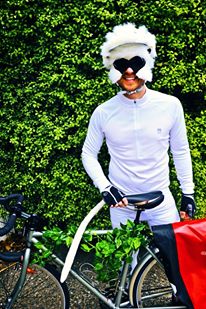Environmental scientist Ivan Steward hopes his unique cycling outfit (which actually isn’t much more outrageous than the neon-Lycra ones we typically see cyclists wearing) will inspire those questions, and some donations too.