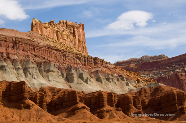 From Cedar City we made our way to Capitol Reef National Park in south-central Utah. The park includes an eight-mile paved scenic drive that passes amazing formations, like “The Castle”: