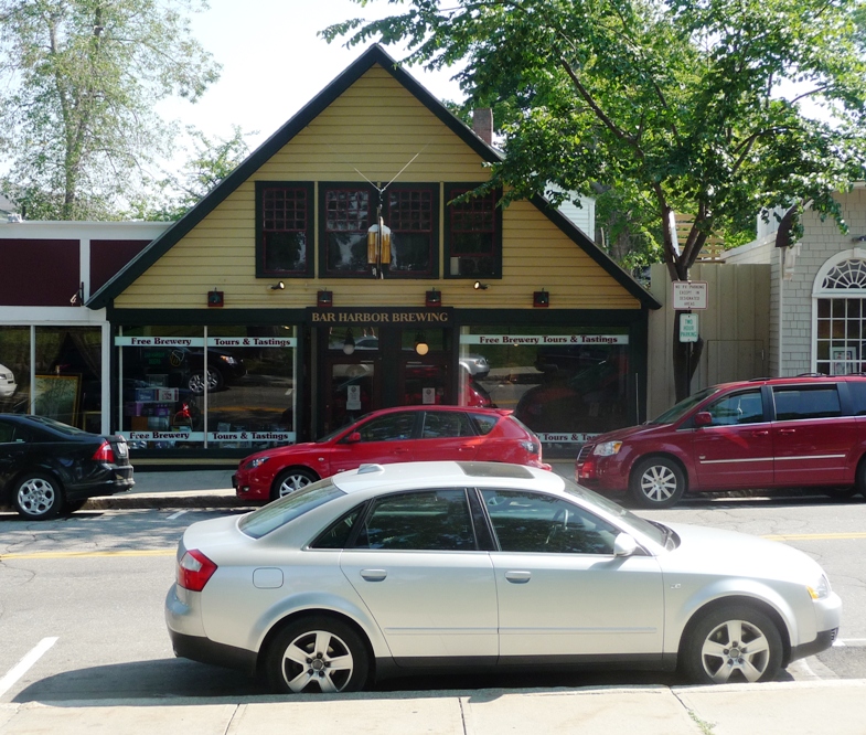 We had no intention of stopping that day; figuring the chances of getting a parking spot in the middle of the city on a Saturday afternoon of a holiday weekend were pretty close to zero. We were just driving through to check out the town and were more than a little surprised to see an opening across the street. A deft u-turn captured the spot, and a few angry gestures from other motorists. Before we even stopped congratulating ourselves on our good fortune, we noticed the even more improbable location of our improbable parking space: directly in front of Bar Harbor Brewing. Surely divine intervention.