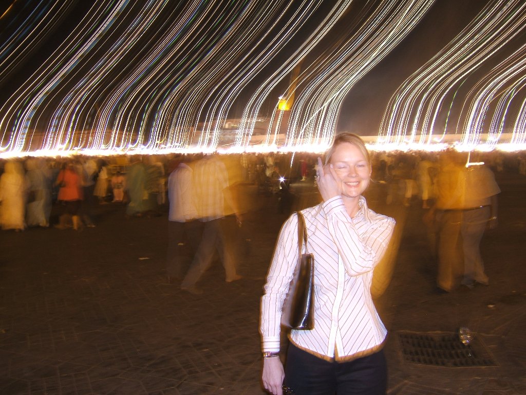 Break free from the culture bubble and enjoy the local hookah, like Shannon here at Djemma el Fna square