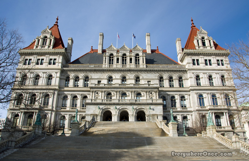 Not even laying eyes on New York’s State Capitol building could shake the cobwebs. Upon seeing it we still weren’t quite sure we had arrived at the correct address. It looked nothing at all like the kind of building we had come to expect from such places. It had no dome, or Doric columns. It didn’t mimic the U.S. Capitol in D.C., like so many state capitols do. Instead, it resembled an Italian palace.