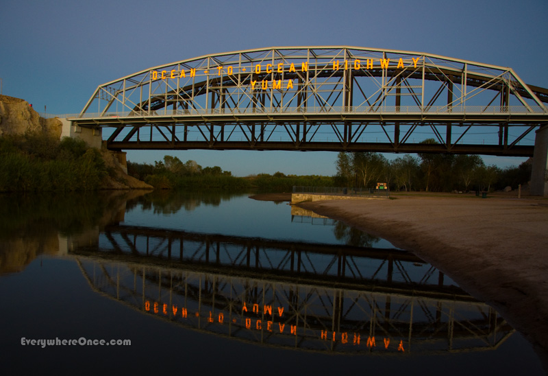 Legend has it that during the Great Depression California officials exploited this bottleneck by creating a makeshift immigration checkpoint at the northern end of the bridge. Folks trying to migrate west in search of work found the bridge guarded by California policemen who frequently turned people back. To this day a section of Yuma is called “Okie Town” for the population of Oklahomans who settled there after being turned away at the California border.